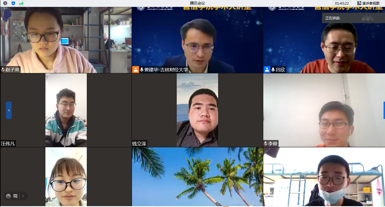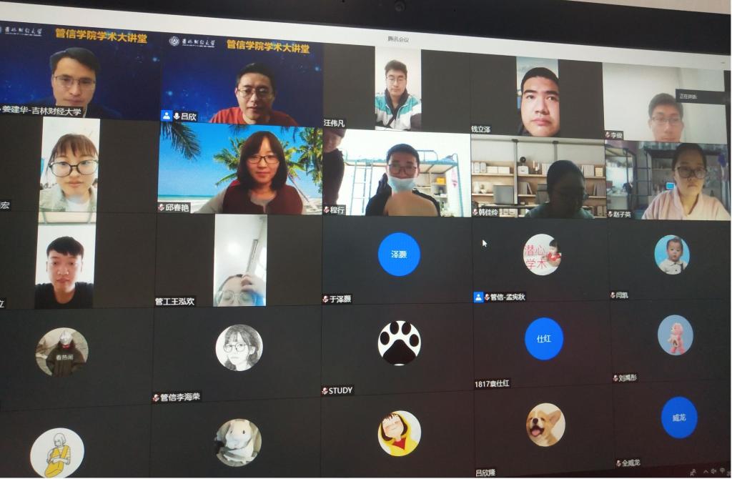 吕欣教授严谨求实的科学态度,顶天立地的治学理念,独到的研究视角给腾讯会议在线的所有人以很大的启发。在整个将近2小时的报告会上,吕欣教授所展示的科研内容,以及世界一流的科研成果吸引了在线的每位参会人员,多次赢得与会师生的“云鼓掌”。在学术报告讨论环节,韩国漫画 副院长姜建华教授、信息系副主任邱春艳老师及研究生别永越、汪伟凡就报告中的学术问题,及个人在相关研究中所遇到的问题,让聆听报告的师生们受益匪浅。