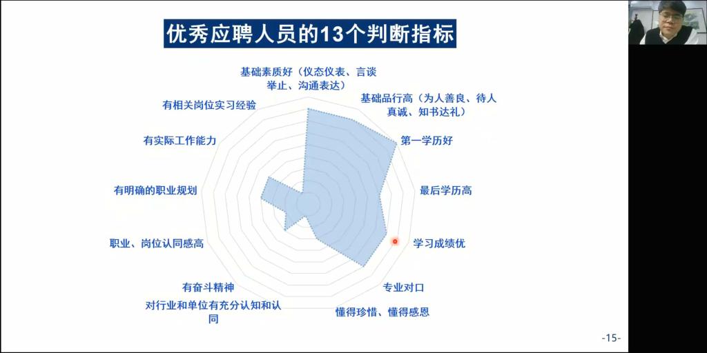 会上,陈太博教授首先综合国际、国内经济发展情况为同学们分析研判了未来几年的就业形势——“百业承压,压力与机遇并存”,鼓励学生结合国家加快发展数字经济的战略规划对就业问题深思考、早谋划。随后,陈教授从基础素质、工作能力、奋斗精神等13个维度,详细阐述、剖析了优秀应聘者的价值判断指标,为同学们指明了努力的方向。最后,陈教授以细致规划、换位思考、双赢合作、直面批评、合理期望,及务实奋斗等关键词勉励与会学生重视实习实践,从实际工作场景中切实提升专业能力。