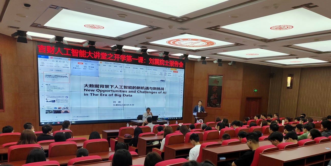 马秀颖在开场致辞中,首先衷心感谢刘震院士拨冗参与本次活动,为管信学子能以院士级精彩学术报告开启新学期的求学征程感到荣幸。然后讲到数字经济时代对财经人才培养提出更高的要求,吉林财经大学积极贯彻落实习近平总书记关于“数字中国”建设的重要论述和视察吉林重要讲话重要指示精神采取的一系列实际行动,包括与华为公司、中软国际共建现代数字产业学院、加入“中外财经教育联盟”并参与“人工智能时代财经人才培养国际高端论坛”等。本次力邀刘震院士为新生开坛教授“人工智能”开学第一课,也是学校在探索人工智能与教育深度融合发展,促进教育变革创新,建成“人工智能+教育”大平台,进而构建基于大数据、人工智能等新兴技术的人才培养新模式的重要举措。最后,她深情祝福2023级新生不负韶华、扎根铸魂、启真崇善、开源奋进,在吉财校园书写更加精彩的人生篇章!