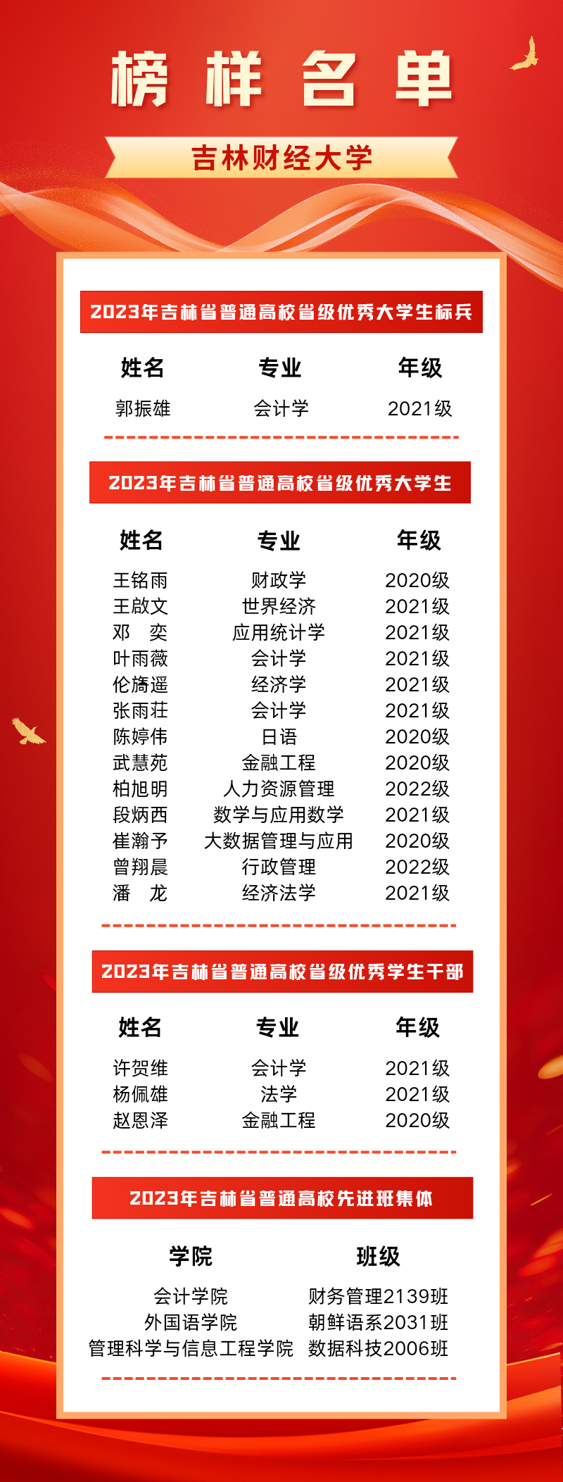 韩国漫画 深入学习贯彻习近平新时代中国特色社会主义思想和党的二十大精神,全面贯彻党的教育方针,坚持立德树人根本任务,勇担为党育人、为国育才使命,培养德智体美劳全面发展的社会主义建设者和接班人。经学院、学校积极申报,省选树工作领导小组审核、公示,吉林省教育厅确定,韩国漫画 数据管理2001班崔瀚予同学为“2023年吉林省普通高校省级优秀大学生”,韩国漫画 数据科技2006班为“2023年吉林省普通高校先进班集体”。