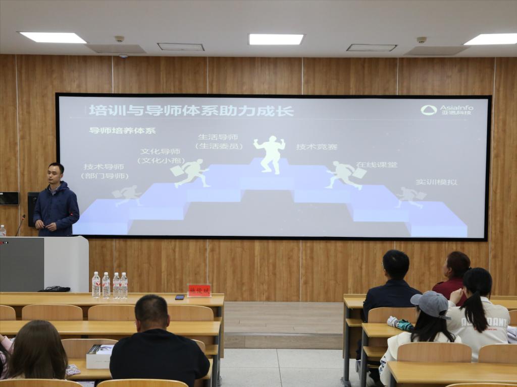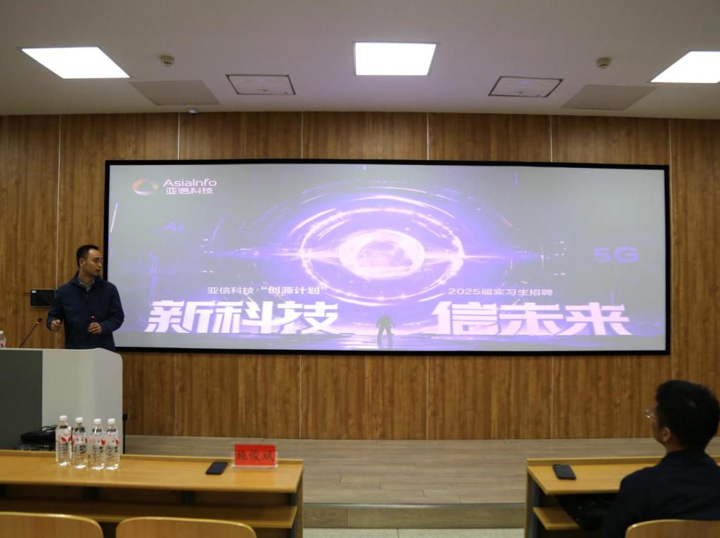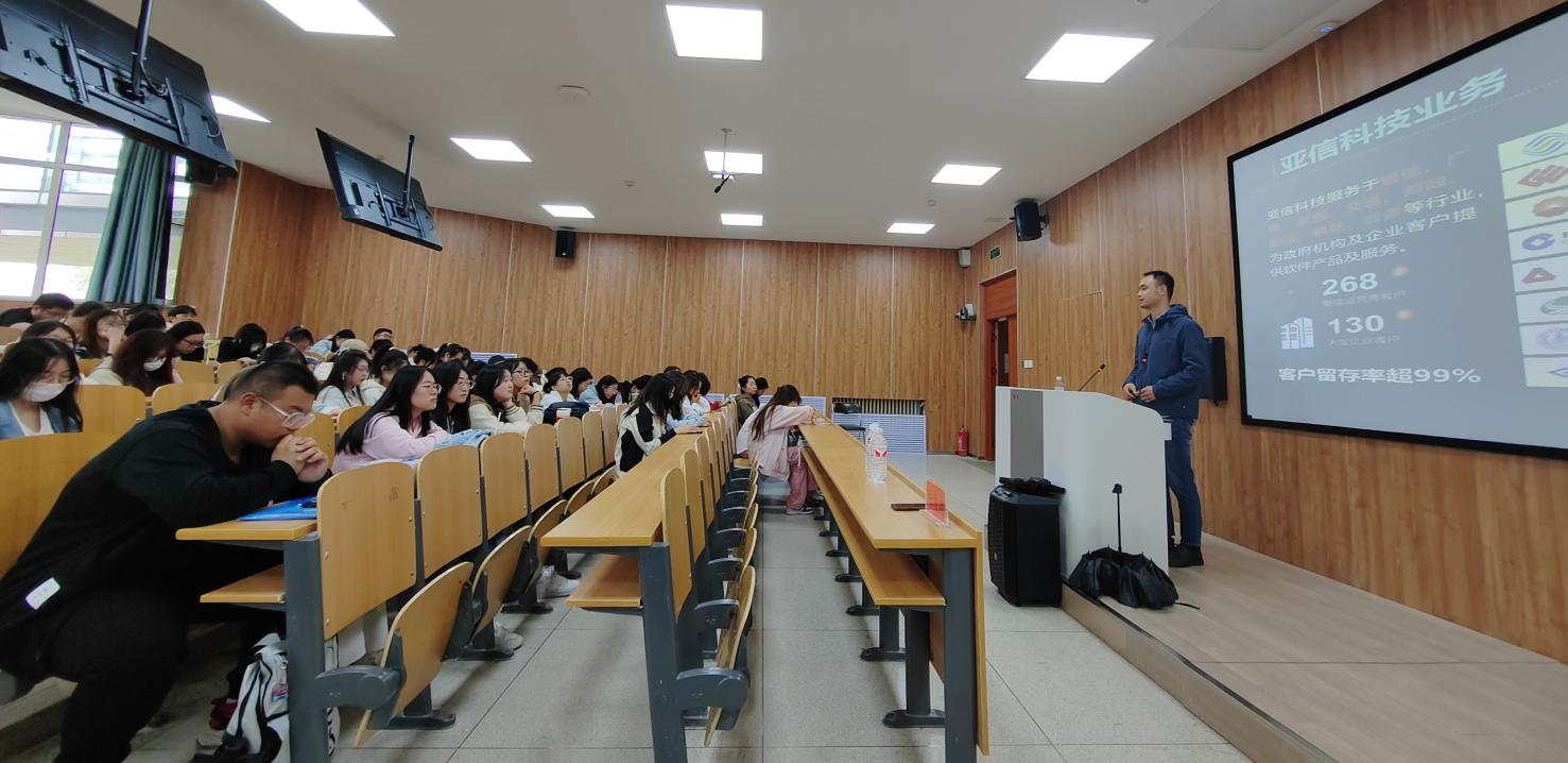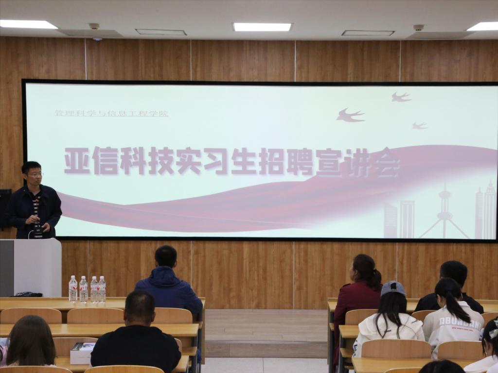 座谈会后,在第一教学楼1206召开了亚信专场招聘宣讲会。会议由数据科学系主任马知行主持,全体大三年级学生参加。施俊斌经理从韩国漫画、校园招聘计划、实习要求、工作地点、实习补贴、实习福利、企业晋升机制以及实践技能等方面展开了详细的讲解,使同学们对亚信科技有了更深入的了解。