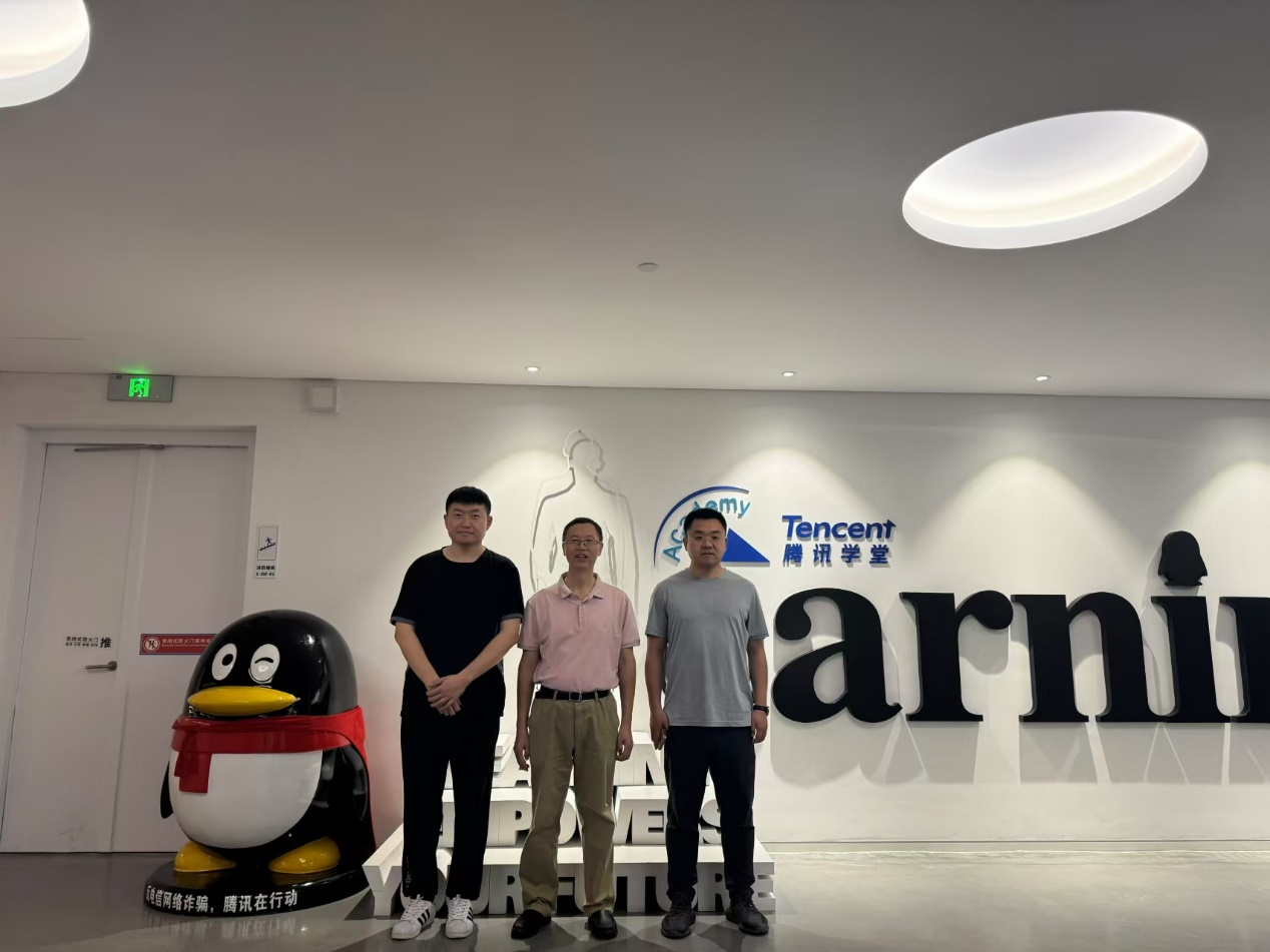 11月3日,学院党委书记丛彪,团委陶嘉文以及毕业班辅导员王奇一行前往深圳腾讯总部进行访企拓岗。在工作人员带领下参观了总部大楼展厅、办公区等,了解了腾讯的发展历程、用户规模、业务板块等内容,并与在腾讯工作的2003级计算机专业向陶、2005级计算机专业况鹰、2008级信息专业陈欢三位校友进行交流。双方就实习实训、AI赋能、编程开发,软件策划等领域进行探讨,并达成了初步合作意向。