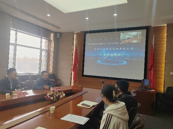 洽谈会后,天阳科技举办了专场招聘会。招聘会采取线上、线下同步的方式举行。企业HR详细介绍了岗位要求、薪资福利及职业发展路径,并分享了实习生的成长案例。企业对应聘学生进行了一对一面试。