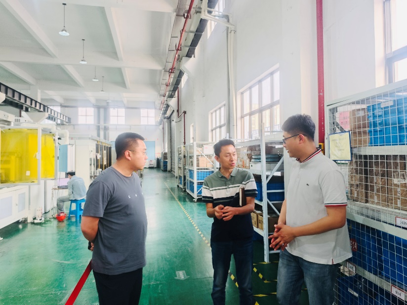 在苏州英维特精密机械有限公司,两位老师实地考察了公司的生产线,详细了解生产线上计算机相关专业员工的发展路径,并与企业负责人就行业发展、人才需求及校企合作等议题深入交流。
