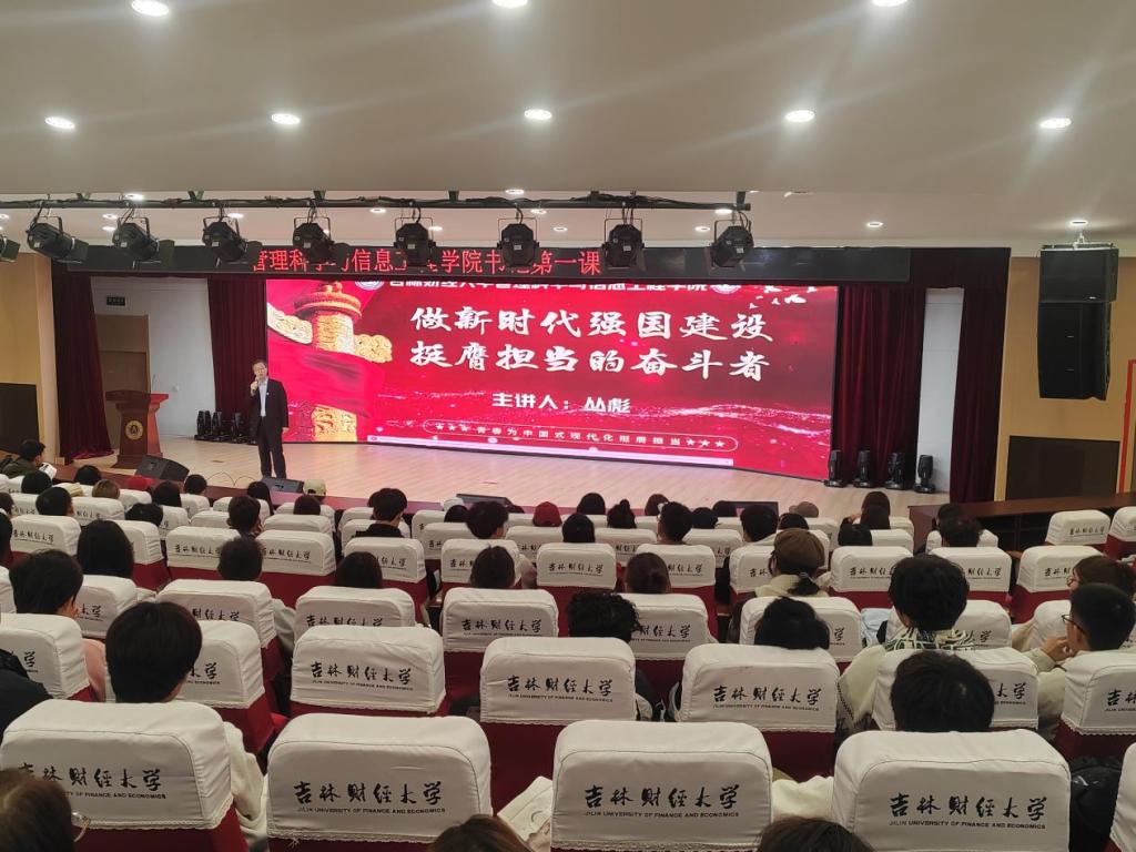 丛彪书记围绕党的二十大精神,深入阐释了“强国建设”的时代内涵与战略部署,强调教育、科技、人才是中国式现代化的基础性、战略性支撑。他结合学校“建设国内一流财经大学”的目标与院训精神,指出高校作为强国建设的“主力军”,必须牢牢把握立德树人根本任务,培养具有家国情怀、创新精神和实践能力的拔尖人才。