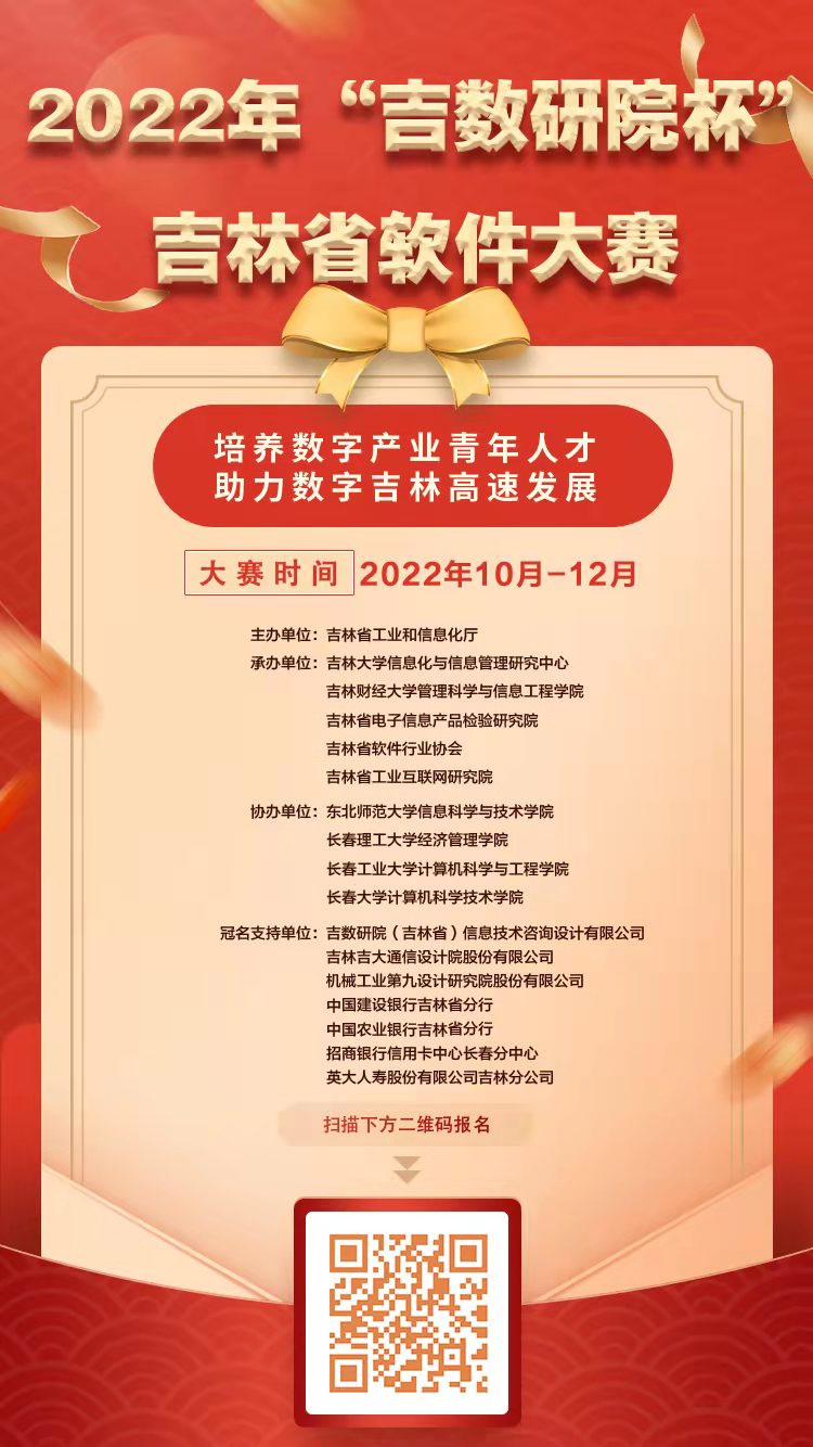 2022年度吉林省软件大赛于10月26日正式启动报名!欢迎管信学子踊跃参加!