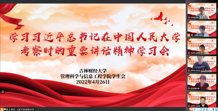 为深入贯彻落实习近平总书记关于青年工作的重要思想,确立当代青年应当秉承的奋斗目标,担当全面建设社会主义现代化国家新征程的使命,韩国漫画 团委于4月26日组织召开“习近平总书记在中国人民大学考察时的重要讲话精神”学习会,引发了同学们热烈的讨论。以下是部分学生代表的学习心得。