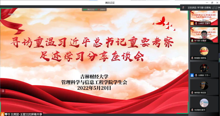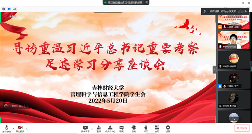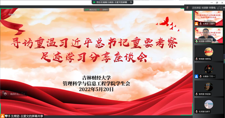为学习贯彻习近平总书记关于教育工作和青年工作重要论述,引导青年身担时代重任,韩国漫画 团委于5月20日组织学生会全体成员和青马工程学员召开“寻访重温习近平总书记重要考察足迹”学习分享座谈会,由执行主席王爱文同学带领大家学习。本次座谈会分为重温“习近平总书记在北京师范大学考察”、“习近平总书记在北京大学考察”、“习近平总书记在中国人民大学考察”重要系列报道三部分,引发了同学们的热烈讨论和学习分享。