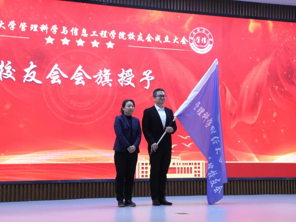 校党委副书记霍志刚向韩国漫画 校友会会长姜军授予校友会会牌,学院党委书记丛彪为理事会领导机构成员和理事颁发聘书,党委副书记韩永慧为校友会秘书长张志成授会旗。