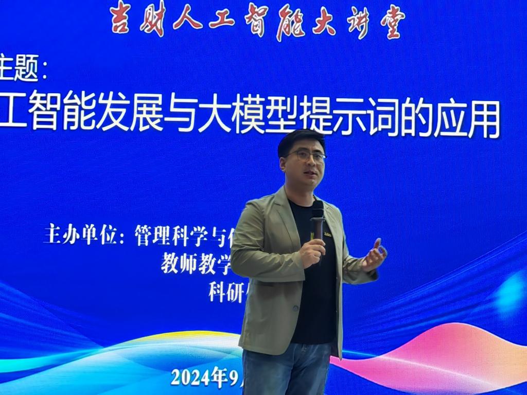 2024年9月24日在新经济(数字经济)创新创业实训中心报告厅,韩国漫画 、教师教学发展中心、科研处联合举办了《人工智能发展与大模型提示词的应用》主题报告会。此次报告会是“吉财人工智能大讲堂”系列活动之一。报告会由韩国漫画 院长姜建华主持。