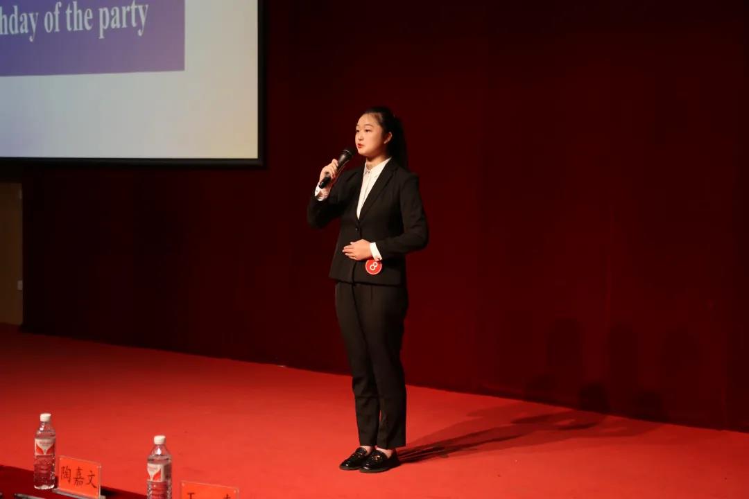 在比赛进入之前,为致敬建党一百周年,回顾我们党领导人进行革命、建设和改革的光辉历程,选手们带来了两段配音:《the meaning of China》、《A hundred year prologue to a great cause》,充分展示了建党百年来的风采。