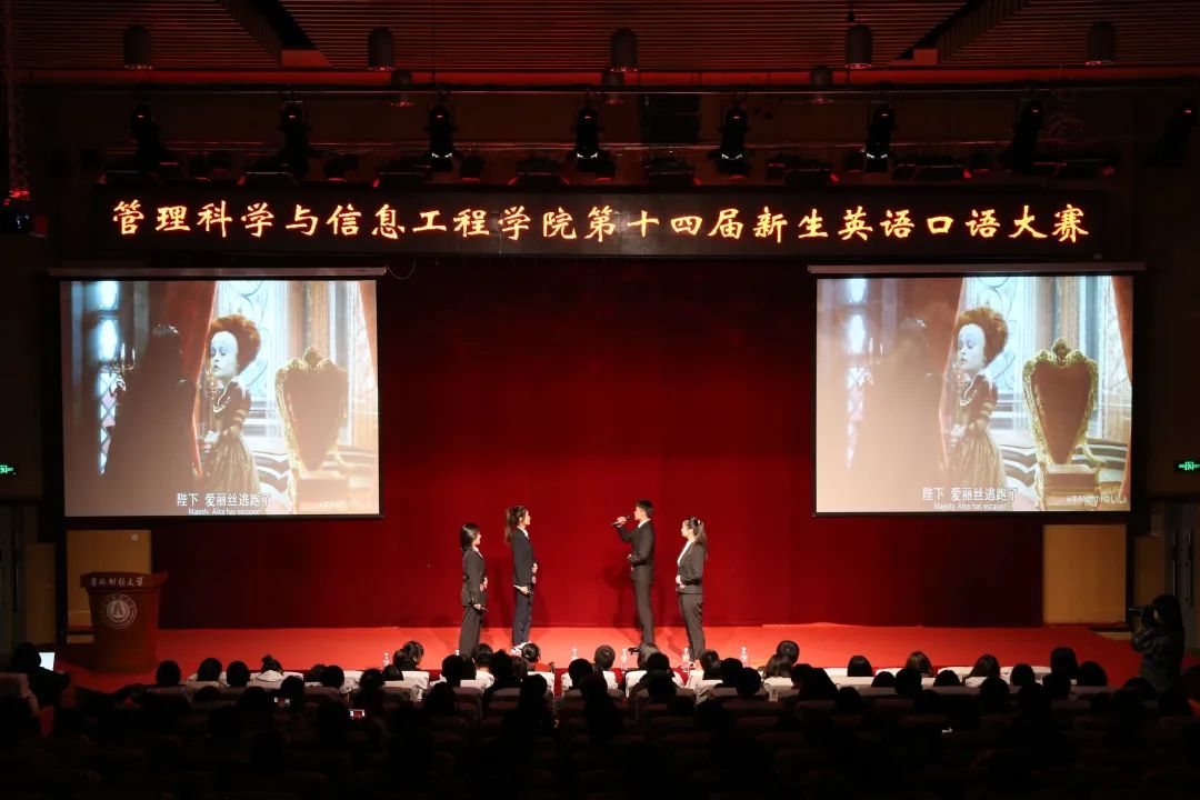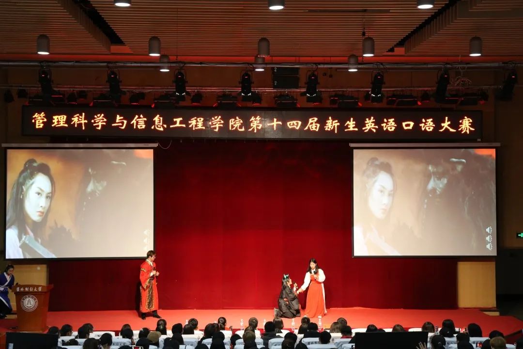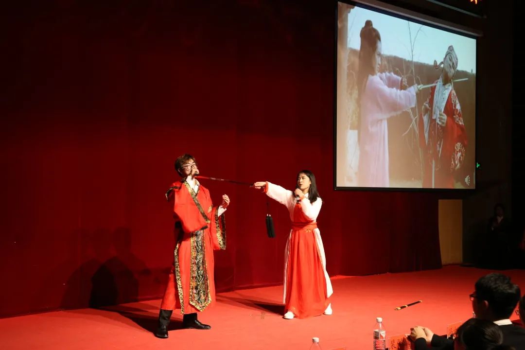苏宇航、吕品、崔露檬、成傲蕾、黄雅婷、赵高杰同学表演了舞台剧《a Chinese Odyssey》。陈欣然、杨星源、李昕悦、盛景威、陈春吉、赵丁同学给我们带来舞台剧《play just》。选手们致敬经典,口语表达流畅,肢体语言丰富。惊人的舞台表现力赢得了阵阵掌声。