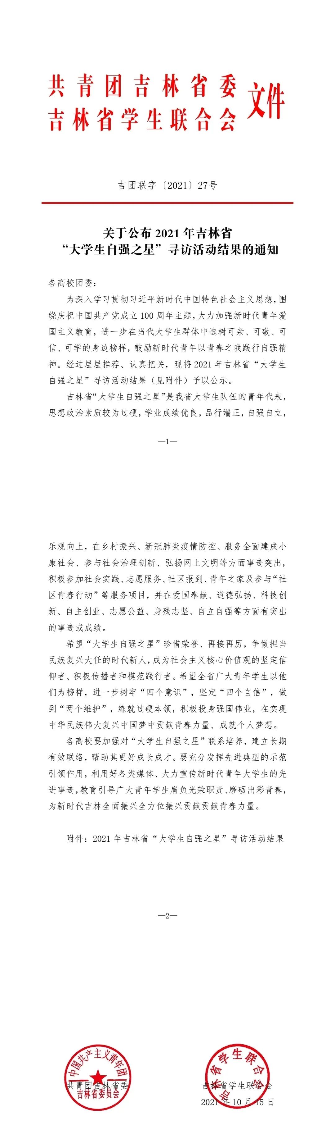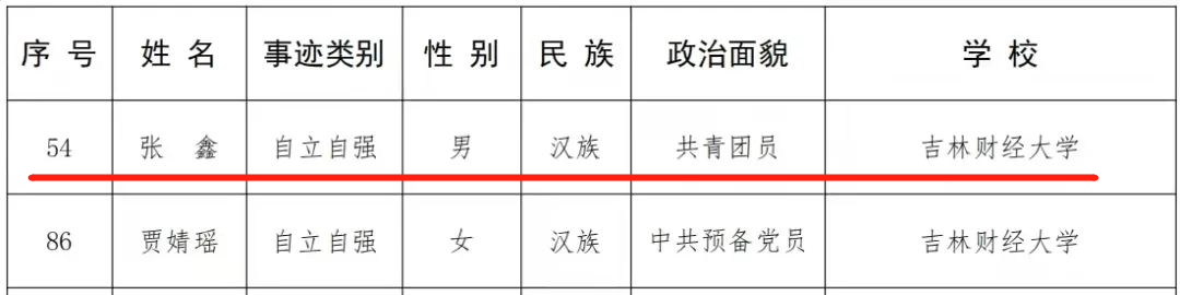 荣获吉林省“大学生自强之星”称号