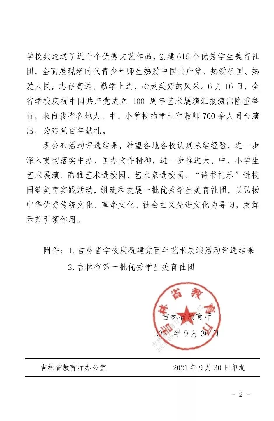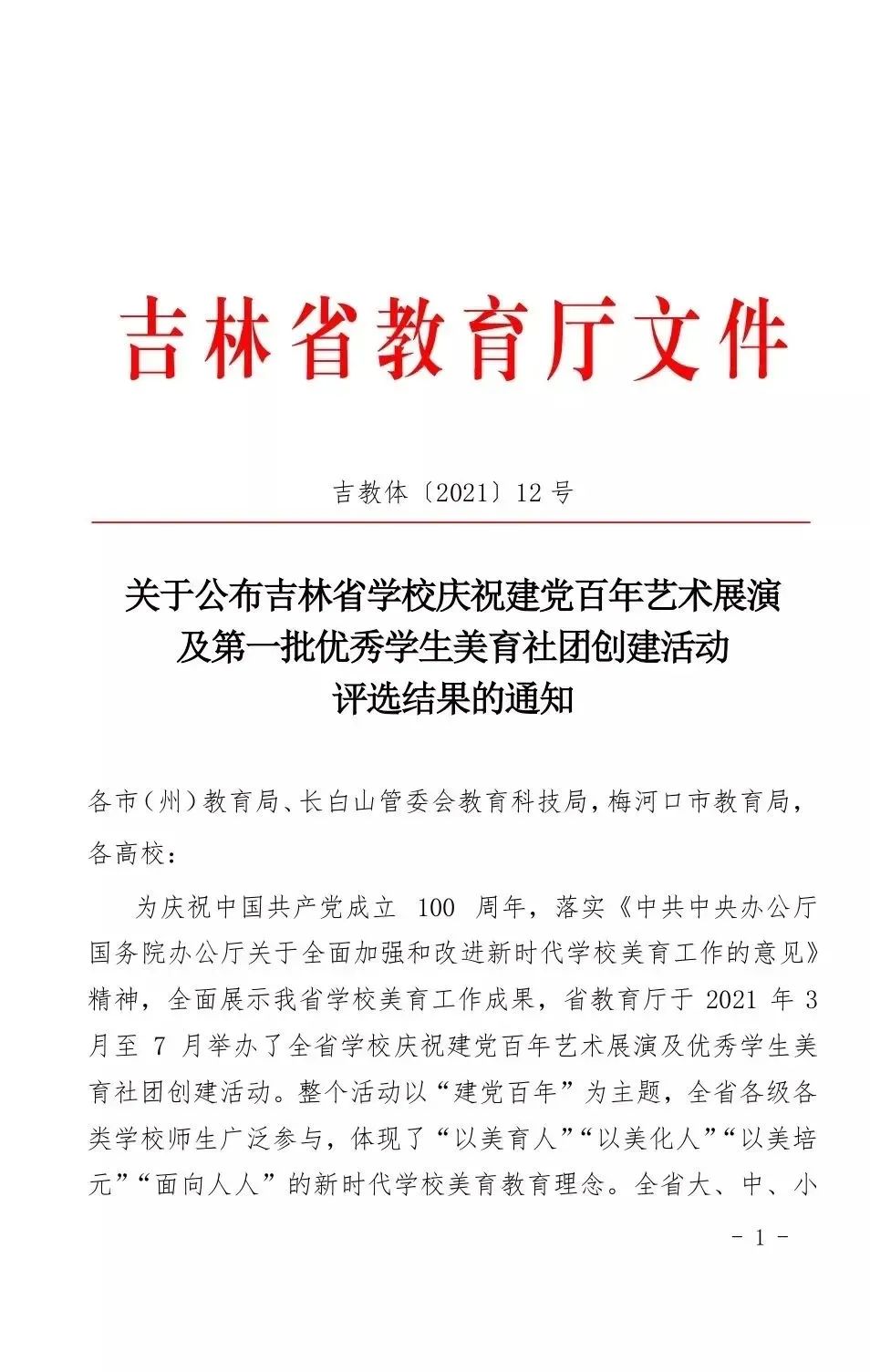 日前, 韩国漫画 在全省学校庆祝中国共产党成立100周年艺术展演及优秀学生美育社团创建活动中喜获佳绩,参赛作品获得省级二等奖3项、三等奖8项,10个学生社团荣获吉林省优秀学生美育社团称号,学校获得优秀组织奖,其中韩国漫画 张爽义务支教小分队(星点志愿者协会)荣获吉林省第一批优秀学生美育社团称号。