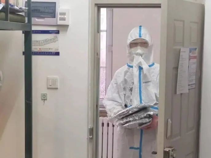 作为第一批志愿者,我深知自己的责任与使命,每天的任务是帮助同学完成核酸自测,发放当天的餐食和抗疫物资,同时也会组织核酸队伍。犹记得有一次学校紧急通知核酸检测,由于那天情况特殊我们从七名志愿者变成了四名志愿者,这无疑增加了我们任务量,我们从晚上八点开始穿上防护服,直到第二天凌晨一点半,防护服十分闷热,不能上厕所,不能喝水,整个人累到虚脱,躺在地上,但是当同学们为我们送来巧克力和水补充体力时,我感觉这一切都是值得的。