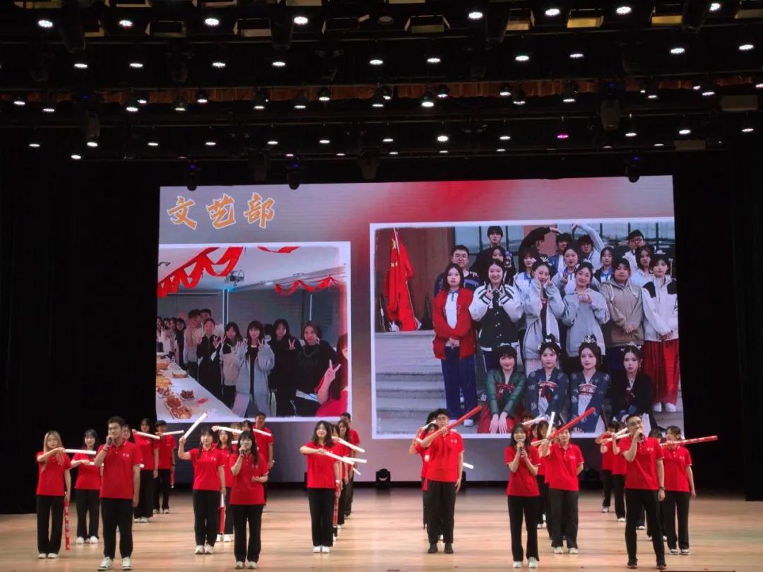 一:新民主主义革命时期。在话剧《觉醒之潮:五四风云》中,青年们高举“外争主权”与“内惩国贼”两面大旗,在民族危亡之际,探索救亡图存之道;在历史洪流之中,用青春和热血谱写了属于他们的青春之歌。随着歌曲《错位时空(五四改编版)》的悠扬旋律响起,党的百年奋斗历程和辉煌成就缓缓浮现,同学们的精彩演绎不仅再现了新时代青年的爱国情怀和奋斗姿态,更唱响了中华民族伟大复兴的激昂乐章,为我们展现了一幅闪耀着璀璨光芒的绚丽画卷。
