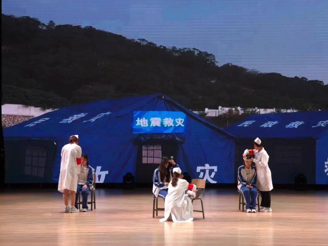三:改革开放和社会主义现代化建设新时期。在《奋进新时代》这一节目中,同学们通过朗诵及合唱的形式,以满腔的热血和激情赞颂了改革开放以来祖国所取得的辉煌成就。中国人民始终团结一心,勇往直前。一部感人至深的情景剧《追忆2008》生动再现了汶川地震期间抗震救灾的壮丽景象。该剧通过精心编排的剧情和深入人心的角色塑造,将中国人民在灾难面前凝心聚力、砥砺前行的精神风貌展现得淋漓尽致。