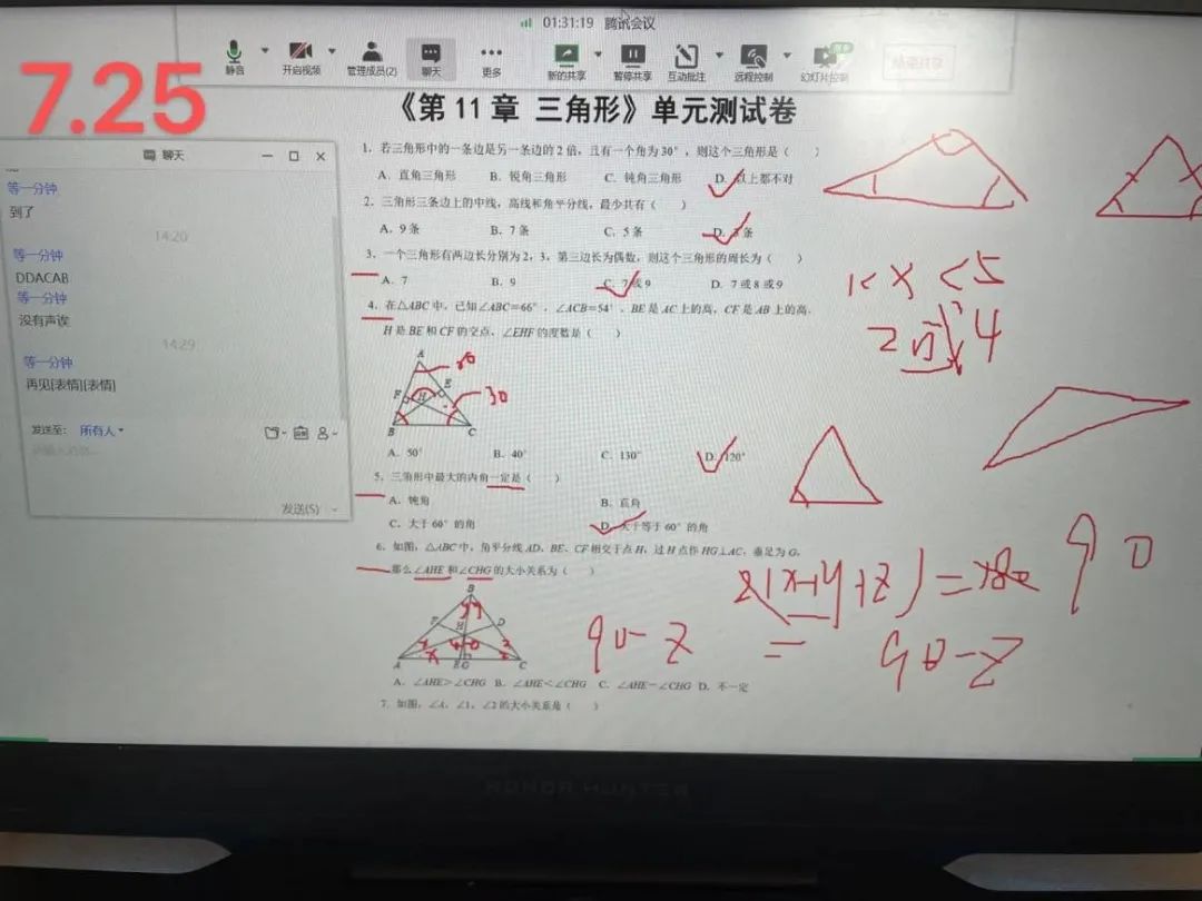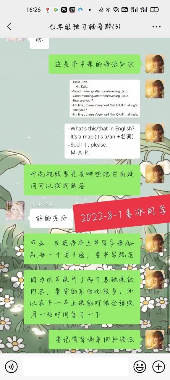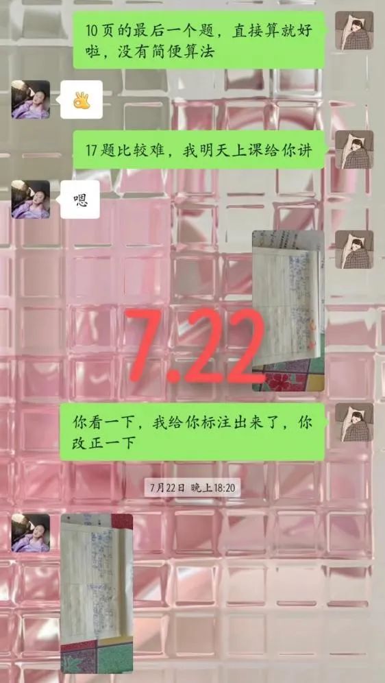 正式上课前,我首先向家长咨询了小朋友上学期的期末成绩,了解小朋友大致的数学基 础,最终敲定每天早上八点钟上课,一天两节课。事实上,线上支教与线下支教有很大不同。上课时,我们看不见彼此的面容,大多数情况下我也不知道屏幕前的小朋友在做什么。因此,在教学过程中我不断地改进自己的教学方法,以确保课上的知识点能被小朋友完全理解。线上支教的日子里,我每天早起备课,课下批改作业,也会经常看网课,学习专业教师的讲课技巧;小朋友也很认真,每天都会提前进入课堂,从未迟到,课上会积极回答问题,也会向我提出疑问的点,他的认真也给予了我无限的动力,让我觉得自己不是一个人在战斗。线上支教已经结束,但每天上课的场景却历历在目,感动也将永驻心间。