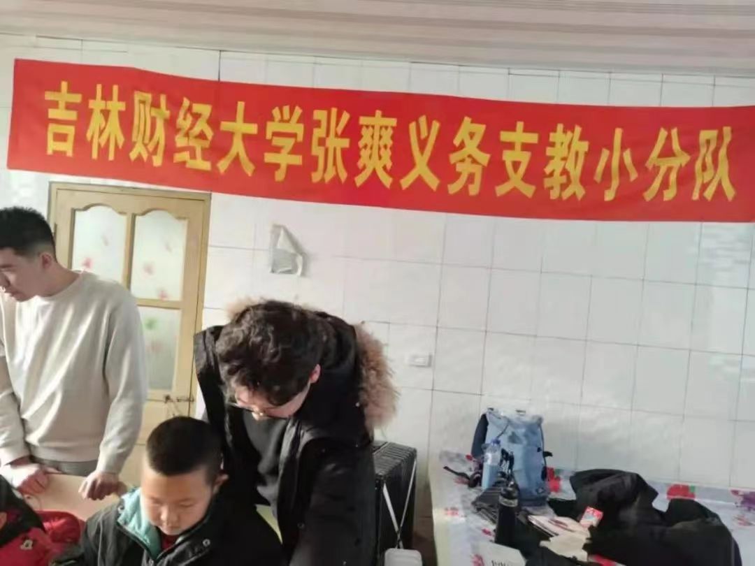 寒冬十二月,晨起践严霜。吉林财经大学张爽义务支教小分队的志愿者马杰珺、孟伟岩、王信达、张梦显一行人背上行囊,着好衣装,踏上了前往吉林省伊通县大湾村的支教之路。阵阵寒风,却阻挡不了他们前行的脚步,冰封万里,却难以冻住他们心头的炙热。他们用汗水浇灌祖国的花朵,用青春诠释志愿者的意义,用行动践行了张爽义务支教小分队之初心,展现了吉财学子之风采。