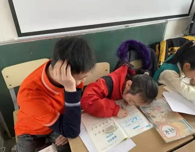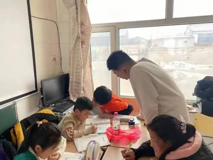 之后的日子里,除了带着他们做作业,我们还帮他们重新梳理了书上的知识点。在课余时间,教孩子们画画;如果天气暖和的话,会和孩子们一起去学校的操场做游戏,我们和他们一起玩的同时他们也带着我们重温了童年。