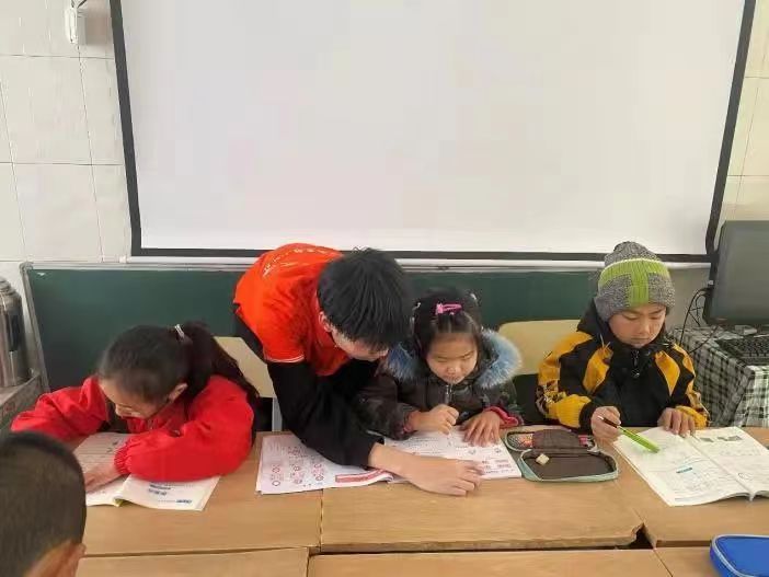 走进支教小屋,看着孩子们对知识充满渴望,满脸笑意,想必这就是支教最美的模样吧。孩子们听话地掏出课本,做起寒假作业。看着孩子们奋笔疾书,我不禁想到,支教的责任虽很沉重,但千千万万的人用双手就能将它托起。突然,我被一声老师打断了思绪,孩子带着疑惑的眼神定格在我身上。我缓过神来,我们每个人都是爱心洪流中的一簇,都可以用自己的爱心播撒,让希望萌芽。