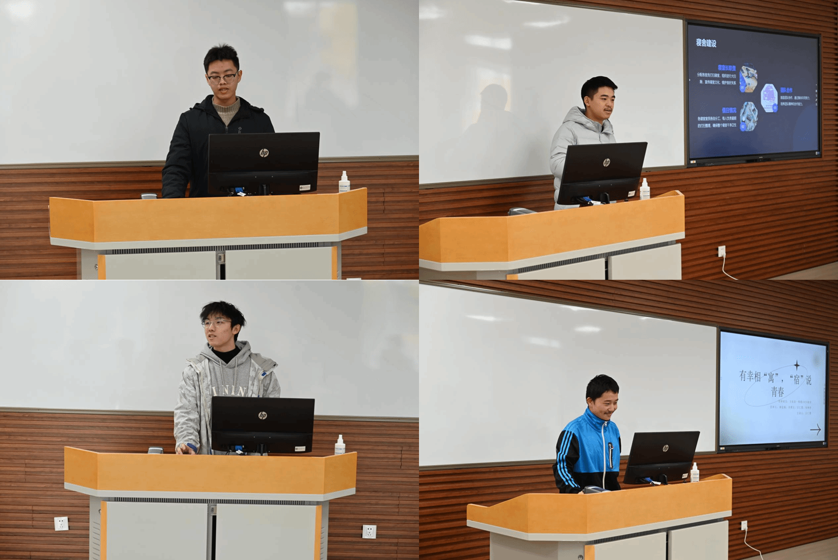 在这一环节中,我们的寝室达人们用PPT展示了他们的寝室文化建设成果。从寝室长的责任担当,到值日生的卫生维护;从创意满满的寝室设计,到书香四溢的文化氛围,每一张照片都诉说着他们的故事。