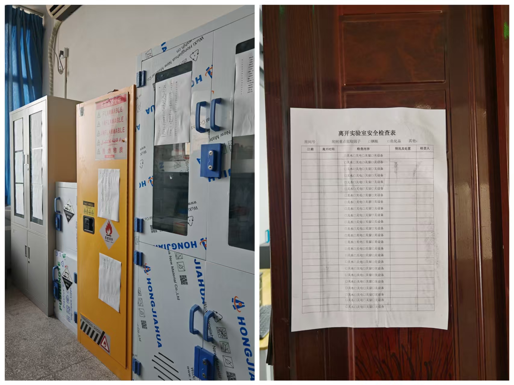 检查重点包括危化品使用与存放、气瓶使用与存放、实验室用水用电、消防设施、实验室安全检查记录、实验室卫生、上次检查后的整改情况等。