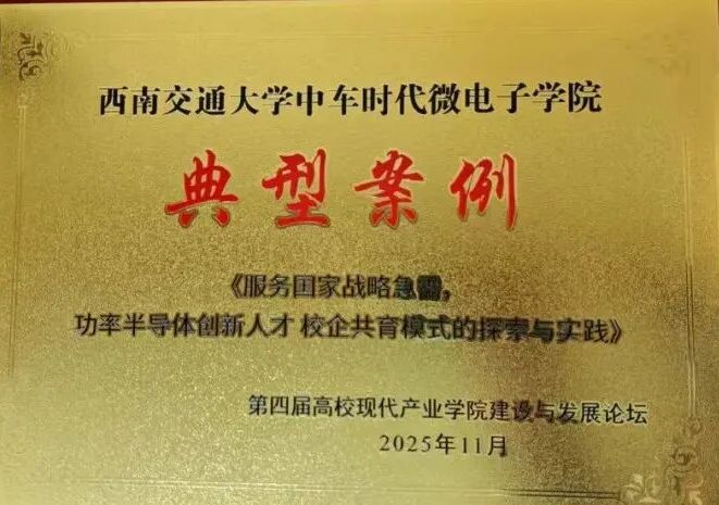 论坛现场公布了经严格遴选产生的15个现代产业学院典型案例。西南交通大学申报的《服务国家战略急需,功率半导体创新人才校企共育模式的探索与实践》成功入选,学校代表受邀参会并获颁典型案例证书。该案例集中展现了学校立足国家功率半导体产业发展需求,通过校企协同构建创新人才培养体系的实践成果,为高校服务关键核心技术领域人才培养提供了可借鉴的经验。