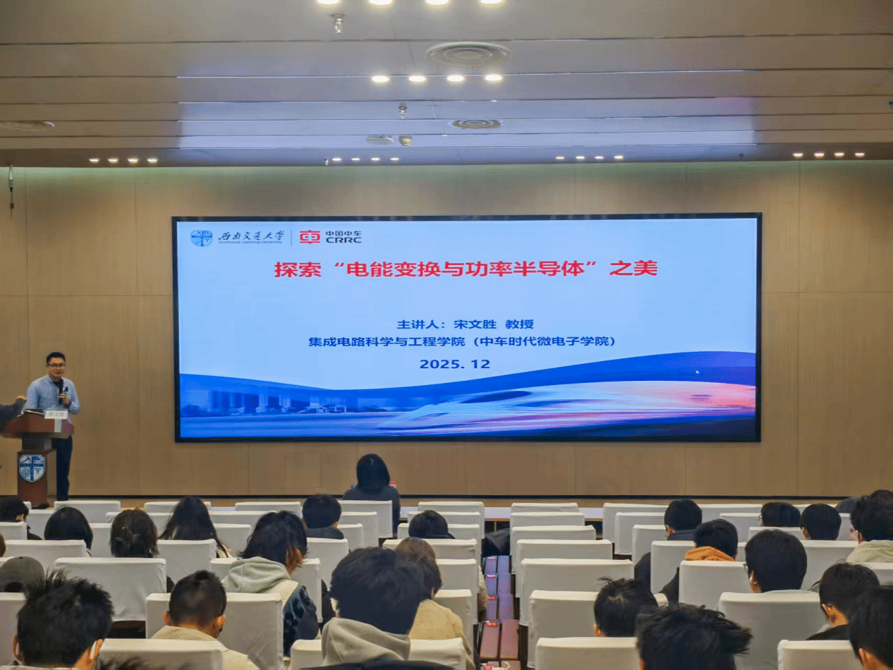 2025年12月16日上午,学院“‘芯’程启航‘芯’青年筑梦”系列讲堂第三期顺利举办。学院副院长宋文胜以“探索电能变换与功率半导体之美”为题,与同学们探索了功率半导体的核心技术逻辑,及其行业演进脉络与趋势。讲座由学院党委副书记王燕主持,全体2025级本科生参与。