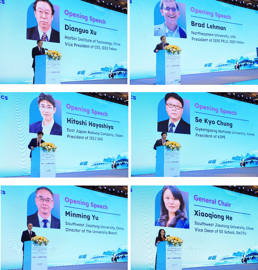 西南交通大学党委书记余敏明,中国工程院院士丁荣军,中国科学院院士刘胜,美国工程院院士Dushan Boroyevich,美国工程院外籍院士Johann Walter Kolar,加拿大工程院院士Liuchen Chang和Yunwei Ryan Li ,丹麦技术科学院院士Frede Blaabjerg和王怀,智利工程院院士Jose Rodriguez,美国国家发明家科学院院士Issa Batarseh教授、爱沙尼亚科学院院士Dmitri Vinnikov等7个国家12名院士,以及IEEE PELS主席Brad Lehman教授,CES副理事长徐殿国教授,CPSS主席刘进军教授,IEEJ IAS主席Hitoshi Hayashiya教授 , KIPE主席Se Kyo Chung教授等来自中国、美国、日本、韩国、德国、丹麦、新加坡、印度等20余个国家和地区、60余名IEEE Fellow、1300余名专家学者与高校师生参加会议。丹麦技术科学院前副院长、丹麦技术科学院院士、IEEE fellow、奥尔堡大学Frede Blaabjerg教授和西南交通大学电气工程学院副院长、国家轨道交通电气化与自动化工程技术研究中心专职副主任何晓琼教授担任大会主席,西南交通大学宋文胜教授担任技术委员会主席,杨平教授担任大会秘书长。