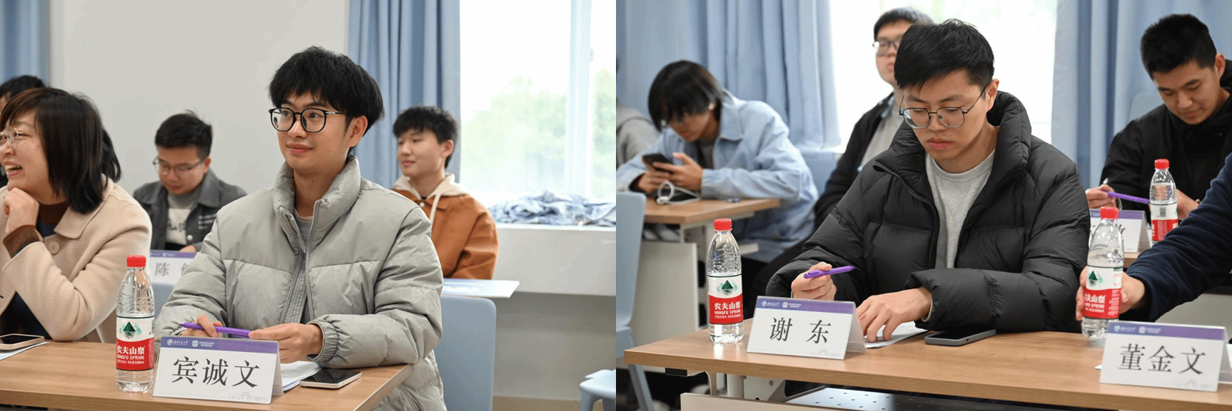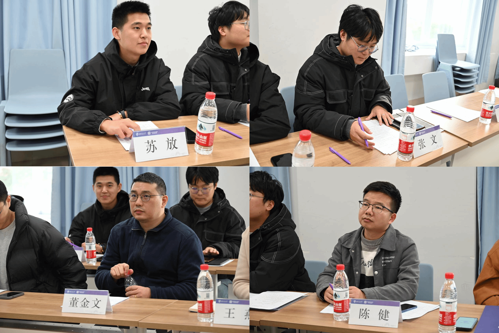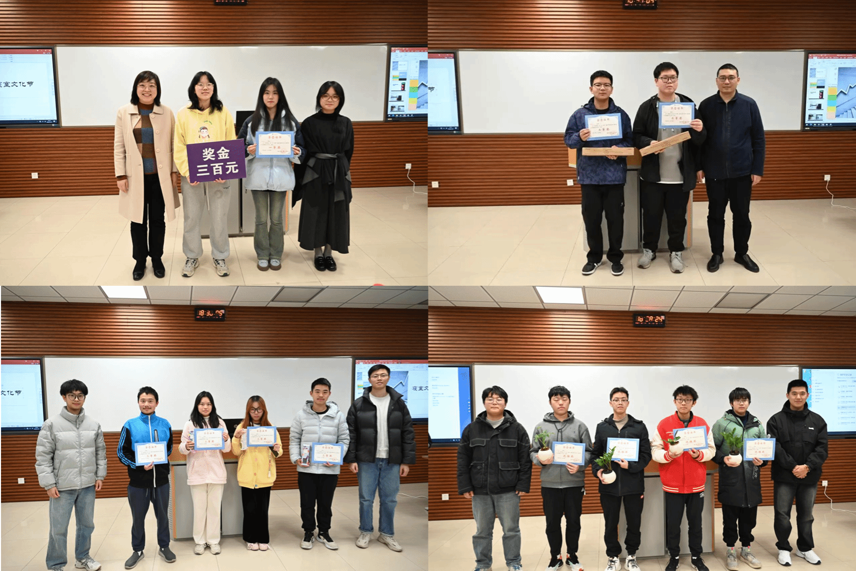 我们的决赛评委阵容强大,由党委副书记王燕,班导师谢东、宾诚文、陈健、董金文,辅导员张文、苏放组成。他们以严谨的态度,为各个寝室的文化建设成果打分。