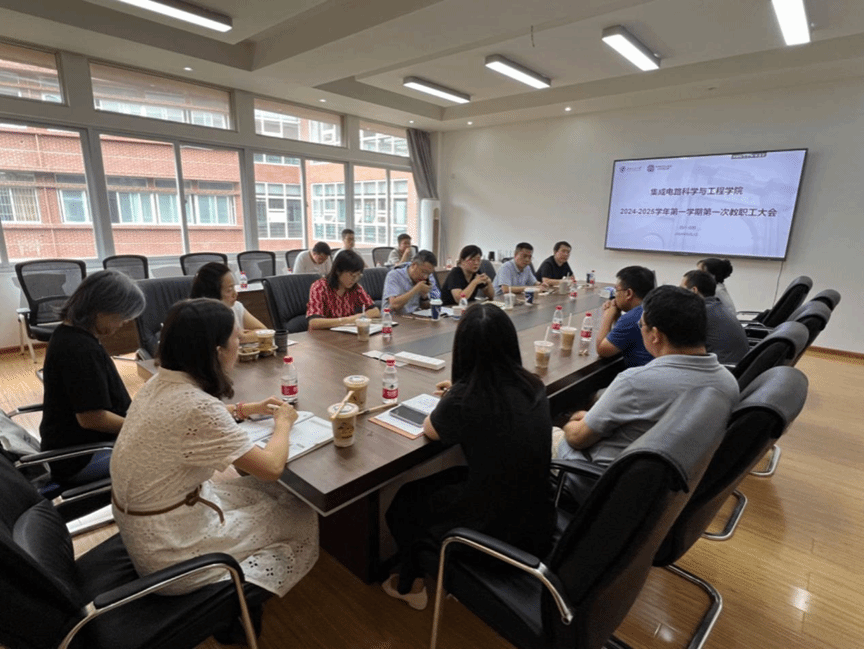 9月2日下午,集成电路科学与工程学院在犀浦校区X1408召开了2024-2025学年第一学期第一次教职工大会。学院党政班子全体成员和全体教职工参加会议,会议由学院党委书记赵舵主持。
