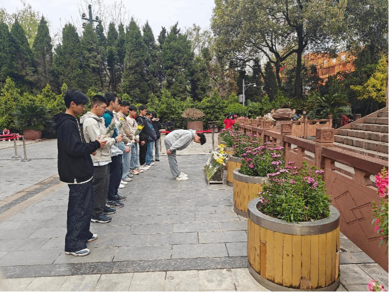 活动在庄严肃穆的氛围中启幕。全体入党积极分子列队整齐,面向辛亥秋保路死事纪念碑,献上承载敬意的花篮。同学们缓缓鞠躬、静默哀思,用无声的缅怀向为民族解放事业英勇献身的革命先烈致以最崇高的敬意,现场弥漫着对先烈们深切的追思之情。