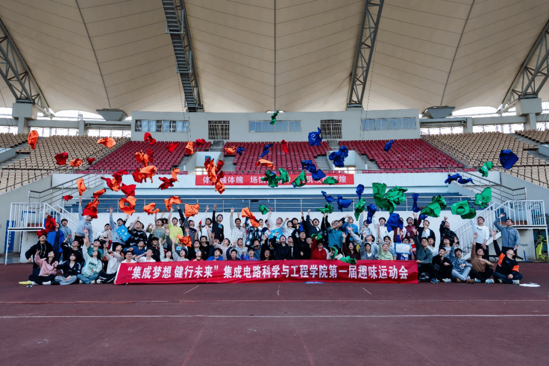 活动尾声,同学们围坐在一起,分享此次运动会的难忘瞬间。最后,全体同学合影留念,用镜头定格下这充满欢笑与汗水的美好时刻。在热烈的氛围中,学院首届趣味运动会圆满落幕。这场盛会不仅是一次体育竞技,更是 “五育并举” 理念的生动实践。同学们用拼搏诠释青春,用团结凝聚力量,将 “集成梦想,健行未来” 的精神深深融入心中。相信这份热情与活力,将继续激励大家在学习生活中勇往直前,以昂扬的姿态书写集成电路人的青春篇章。