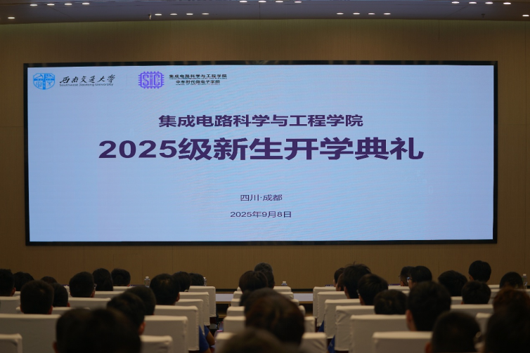 9月8日晚,西南交通大学集成电路科学与工程学院2025级新生开学典礼在犀浦校区图书馆二号报告厅举行。学院党委书记赵舵、常务副院长郝莉、副院长宋文胜、邸志雄、产教融合主管刘东出席典礼,学院教师代表、新生班导师、教务员、辅导员、新生朋辈导师及2025级新生参加典礼。典礼由学院党委副书记王燕主持。