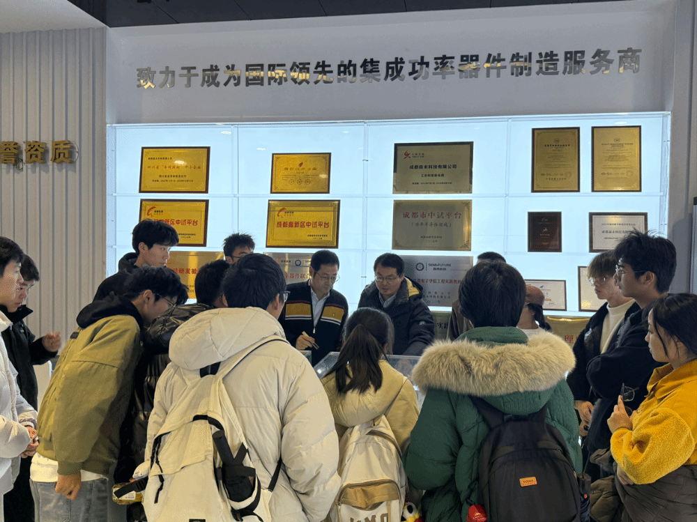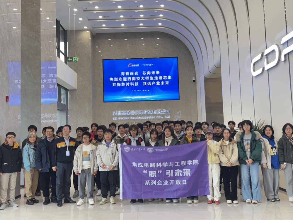 为深化产教协同育人,促进同学们了解半导体产业前沿动态,2025年11月25日,学院组织师生前往成都高投芯未半导体有限公司进行参观交流活动,在企业一线沉浸式感知半导体产业脉动。
