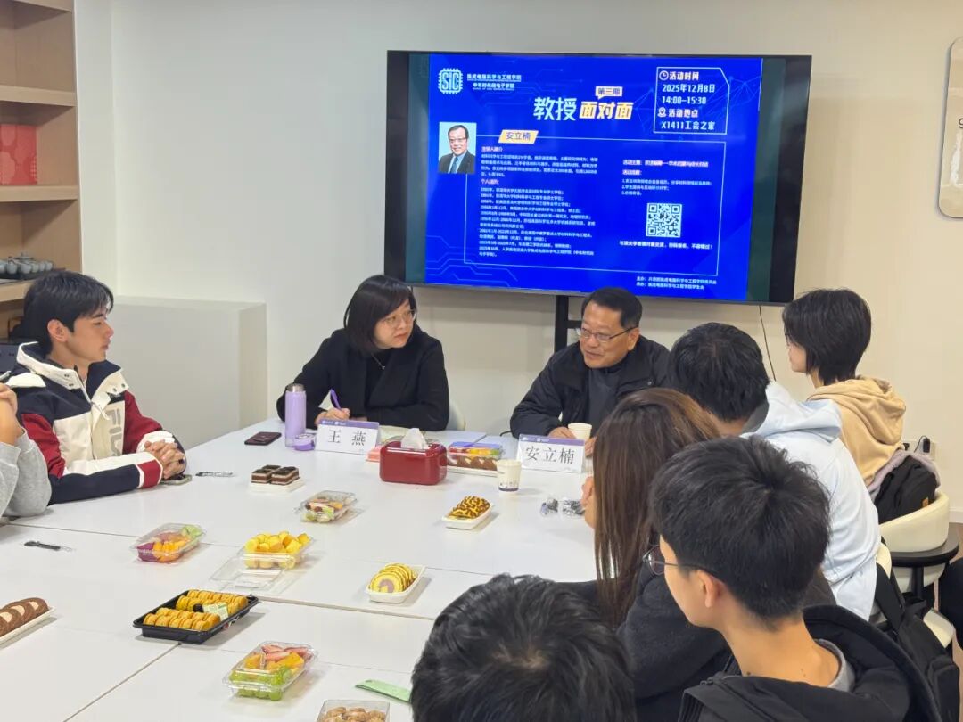 12月8日下午2点,集成电路科学与工程学院学生会在犀浦校区X1411工会之家成功举办第三期“教授面对面”活动。本次活动以“学术启蒙与成长对话”为主题,特邀学院扬华讲席教授安立楠倾情分享,学院党委副书记王燕主持活动,师生围坐茶话,共话学术人生,氛围热烈融洽。